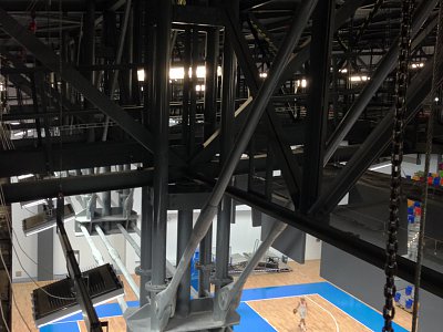 | Popis | Jedná se o rekonstrukci zastaralé sportovní haly a přístavbu nového traktu zázemí. V objektu haly došlo k prohloubení o cca 5 m a vytvoření podzemí, které slouží jako technologické zázemí a prostor šaten. V prvním patře byly vybudovány dvě hrací plochy a hlediště pro cca 1 800 návštěvníků. V dalších podlažích velké haly vznikly prostory pro technologické zázemí, vrátnici, prodejnu sportovních potřeb, VIP salonek a občerstvení návštěvníků. Vestavbou vznikl v prostoru menší haly objekt sloužící jako šatny a strojovna vzduchotechniky. V nové přístavbě vznikly prostory pro technologické zázemí, zázemí pro televizní štáby, VIP salonek druhou strojovnu VZT a komunikační trakt (výtah a schodiště) pro uvažovanou výstavbu kancelářské budovy basketbalové federace. |
