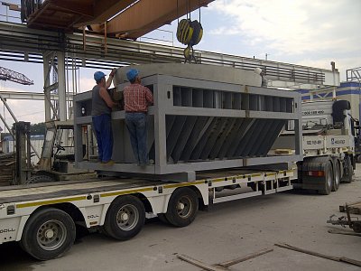 „Vzhledem k velkému důrazu na přesnost výroby obou částí prefabrikovaného dílu byla pro výrobu zvolena tuhá ocelová forma, ve které byly vyrobeny obě poloviny vejce. Především bylo důležité, aby obě tyto osmitunové poloviny měly shodné rozměry v dosedací ploše,“ popsal přípravu mistr výroby Jiří Boháč.