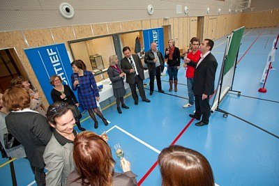 PRAHA - Dne 29.3.2011 proběhlo předání nově rekonstruované tělocvičny patřící k Německé škole v Praze. Přestřižení pásky se účastnili nejen zástupci školy, dodavatele závodu Speciální činnosti divize Pozemní stavby HOCHTIEF CZ a. s., ale i bezpočet žáků, kteří netrpělivě čekali na možnost vyzkoušet si nové prostory tělocvičny.