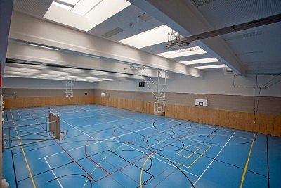 Tělocvična nabízí mladým sportovcům plochu 23 x 45 metrů k využití pro basketbal, fotbal, volejbal, házenou, badminton, florbal, futsal a tenis.
