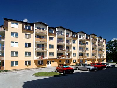 | Popis | Obytný soubor je tvořen řadovými bytovými domy, které jsou členěny do tří sekcí. Všechny mají pět nadzemních podlaží, z toho poslední má charakter mansardy a to zejména s ohledem na okolní zástavbu. Mansarda krytá asfaltovým šindelem opticky snižuje výšku objektu. Po technické stránce nese výstavba charakteristické rysy firemní standardizace techno-logií pro naše bytové stavby. Svislé nosné prvky z Porothermu jsou doplně-ny prefabrikovanými filigránovými stropy s dobetonovávkou.