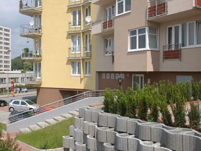 | Popis | Navržený blok domů je rozdělen, přičemž mají obdobné stavebně technické řešení. V zásadě jde o stěnový příčný konstrukční systém s nosnými stěnami z cihelných tvarovek Porotherm. Objekt je založen na základových pasech v jílovitých břidlicích. Obvodový plášť je navržen z tvarovek a doplněn je kontaktní tepelnou izolací z PPS. Stropy jsou navrženy jako keramické, skládané z tvarovek Porotherm, doplněné dobetonávkami s keramickými vložkami v nároží objektu. Schodiště jsou prefabrikovaná, s deskovými podestami a samostatnými schodišťovými rameny. |