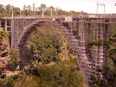 | Popis | Vzácný železobetonový most přes Lužnici, který je na soupisu technických památek je již částečně zakryt lešením. To postavil HOCHTIEF VSB a.s. divize 9 o.z., protože takový rozsah prací zvládne v republice pouze několik renomovaných lešenářských firem a HOCHTIEF VSB a.s. divize 9 o.z. mezi ně zajisté patří. Most byl otevřen v červenci 2004, oprava však trvala až do října 2004. |