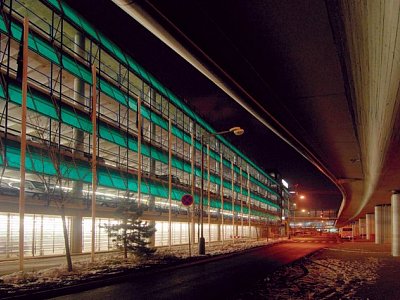 Veřejný velkokapacitní pro osobní vozy a autobusy o 1 podzemním a 6 nadzemních podlažích rozšiřuje stávající kapacity parkovacích míst letiště Ruzyně.
