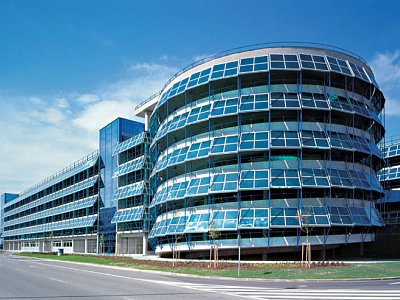 Konstrukce je tvořena železobetonovou monolitickou základovou deskou a monolitickými stěnami. Fasáda schodišťových věží a výtahových šachet je provedena jako prosklená do ocelového rastru. Z venkovních objektů jsou to především zpevněné parkovací plochy, komunikace a chodníky představující celkem 2 500 m2 chodníků ze zámkové dlažby, 3 000 m2 parkoviště pro autobusy s živičným povrchem. |