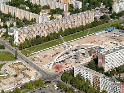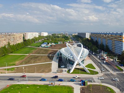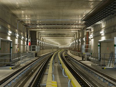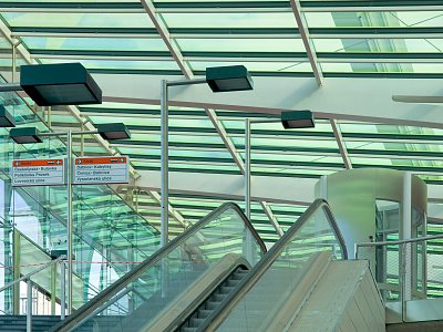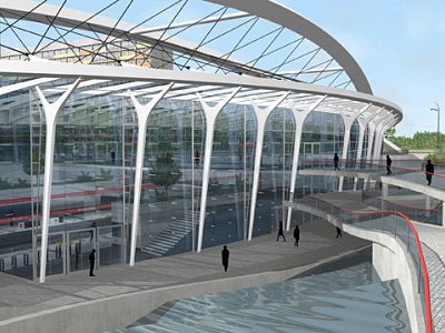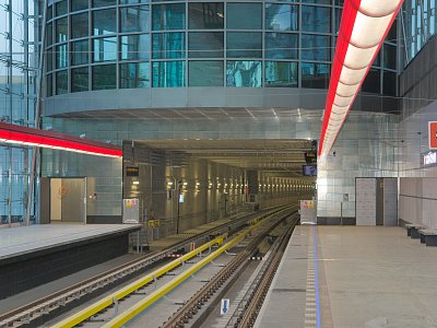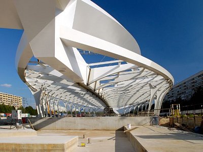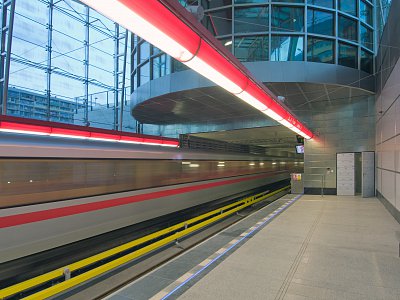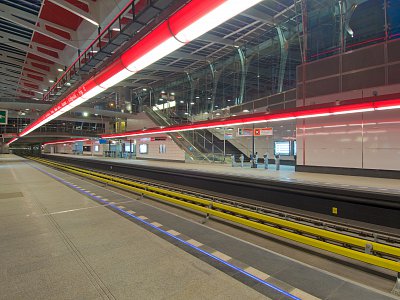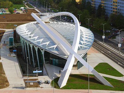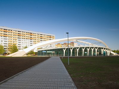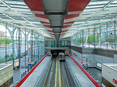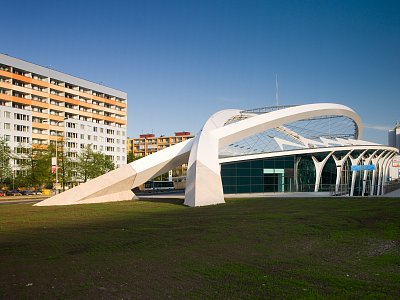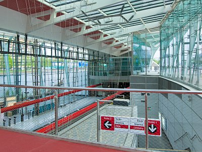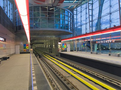| Popis | Druhá etapa sestává ze 3 stanic a navazujících tunelových úseků. Vlastní stanice je výrazným architektonickým objektem dle návrhu Ing. Arch. Patrika Kotase. Jedná se o povrchovou (hloubenou) stanici , kdy konstrukce spodní stavby je řešena jako klasická železobetonová konstrukce. Nejvýraznějším prvkem stavby je ocelová konstrukce vlastní stanice , kterou tvoří soustava obloukových vazníků (rozpětí cca 160m) , zavěšené skleněné střechy a skleněné fasády. Součástí stanice jsou také terénní úpravy vstupních prostor s mimoúrovňovými lávkami pro pěší schodišti a vodními kaskádami. V rámci stavby bude také vybudováno záchytné parkoviště. |