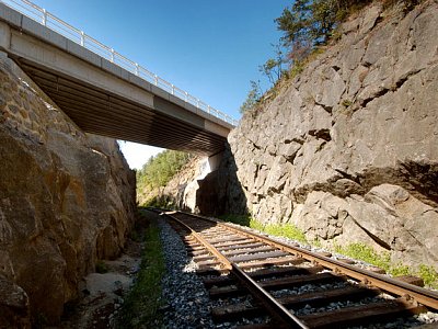 Na základě geologického průzkumu byla zjištěná blokovitě kulovitá odlučnost skalní horniny, proto bylo nutné provézt sanace a zpevnění této horniny. Sanace proběhla v únoru 2005 za velmi obtížných povětrnostních podmínek a ve výluce ČD. Po geologickém průzkumu byly při kotvení části skalního masívu použity technologie mikropilotáže.