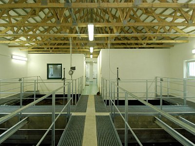 Nová čistírna je navržena jako soustava podzemních železobetonových nádrží. Výstavba probíhala za provozu stávající čistírny. Po dokončení stavebních prací jsou odpadní vody přepojeny na nový čistící systém. Odpad je z území obce na ČOV Katovice nadále gravitačně přiváděn jednotným kanalizačním systémem, který je zachován i po provedení rekonstrukce kritických úseků a výměně technologického vybavení. Před objektem je vybudována odlehčovací komora, kde dochází za deště k odlehčení podílu přiváděné odpadní vody přesahujícího kapacitu mechanického stupně čistírny. Na vtoku do samotné čističky je vybudována čerpací stanice, kde jsou ponorná kalová čerpadla. Odtud odpadní voda postupuje do uklidňovacího objektu. Za jednotkou hrubého předčištění následuje rozdělovací objekt s přepadovou hranou. Zde dochází k rozdělení na obě biologické linky. Na čistírně odpadních vod je osazen řídící a informační systém včetně operátorského pracoviště, který umožnňuje monitorování, kontrolu a nastavení základních technologických parametrů čištění. |