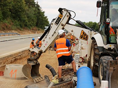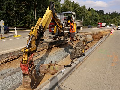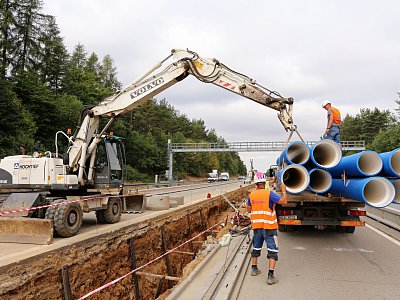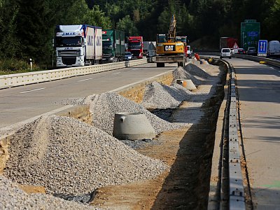 V rámci sdružení tří firem se společnost HOCHTIEF CZ a. s. podílela na druhé etapě celkové modernizace dálnice D1. Po provedení oprav před stavbou a provizorního rozšíření jízdních pásů byly nejdříve realizovány práce ve středním dělicím pásu. Tyto zahrnovaly rekonstrukci kanalizace a kompletní výměnu elektrického vedení. Po zimní pauze následovala modernizace levého jízdního pásu spočívající v demolici cementobetonových povrchů, úpravy podkladních vrstev a položení nového povrchu. Následná instalace trvalého dopravního značení, nových svodidel a ostatních vodicích záchytných systémů znamenala dokončení prací na levém jízdním pásu. Poté byla doprava převedena na nově zrekonstruovaný pás a obdobné práce probíhají i na pravém jízdním pásu. |