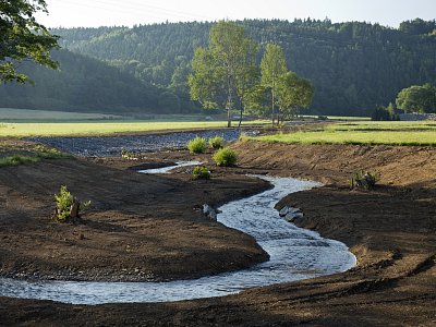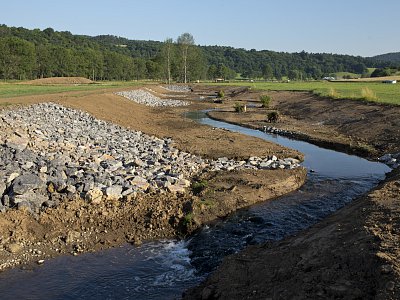 Předmětem díla byla revitalizace koryta vodního toku říčky Loděnice délky 1840 m, a to od silničního mostu v obci Nenačovice až po napojení na stávající koryto pod Kalousovo mlýnem. Principem úprav byl návrat k přirozenému rozvolněnému a členitému charakteru vodního toku. V rámci díla byly v zájmovém území prováděny rozsáhlé zemní práce a záhozy lomovým kamenem, doplněny průtočné a neprůtočné tůně, brod, skluz a významné vegetační úpravy. Celková plocha trvale dotčených pozemků pásu revitalizovaného koryta činí cca 37 500 m2. |