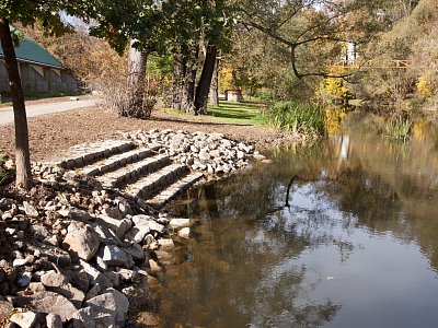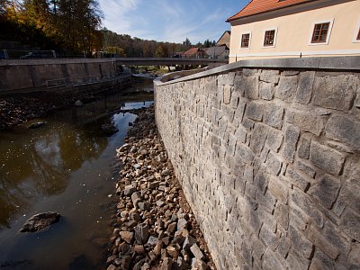 Cílem stavby bylo navrátit koryto toku řeky Blanice k přírodnímu režimu, a to zároveň s vybudováním protipovodňové ochrany centra města Vlašimi. Přírodě blízkému režimu bylo dosaženo diverzifikací proudění malých průtoků v kynetě toku, a to pomocí soustavy příčných záhozových prahů a výhonů umístěných v korytě těsně pod hladinu, tvorbou dnových tůní a ve dvou místech ostrovů v korytě toku. Na závěr byla naplánována rozsáhlá náhradní výsadba, která doplnila úpravu o typické břehové porosty, čímž bylo dosaženo celkově přírodního vzhledu. Protipovodňová ochrana spočívala ve zkapacitnění koryta toku a vybudování bariér v kombinaci zemních hrázek a kamenných zídek. Maximální výška protipovodňové bariéry je 1,5 m. Protipovodňová ochrana je koncipována tak, aby zapadla do historické části města Vlašimi. Zároveň stavba řeší zpřístupnění centra a břehů řeky Blanice pro obyvatele Vlašimi soustavou chodníků, lávek a manipulačních stezek. Součástí jsou také dva rybí přechody vybudované na stávajících jezech. |