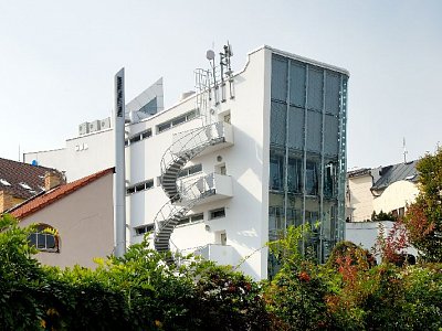 | Popis | Přestavba vycházela z respektování stávajícího objektu, přičemž zvětšení kapacity bylo řešeno rozšířením budovy do zahrady. Současně byly pod zahradou, přístupnou z banky, vybudovány podzemní garáže s 60 parkovacími místy. Nová část budovy, která má 6 nadzemních a 4 podzemní podlaží, je založena na kotvené železobetonové desce s pažením z milánských stěn. Nosný železobetonový skelet je vyzděn pórobetonovými tvárnicemi. Vnější opláštění do zahrady tvoří prosklená fasáda a jednoplášťová střecha je opatřena krytinou SARNAFIL. |