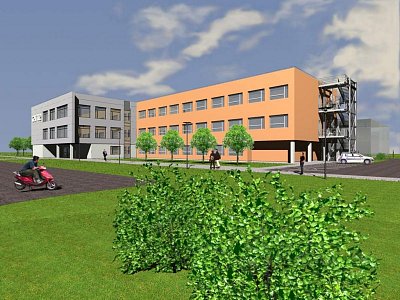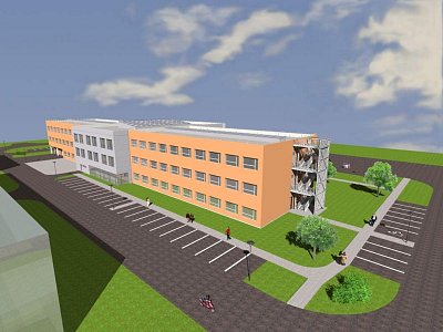 | Popis | Připravovaný pavilon je koncipován jako nepodsklepená administrativní budova se třemi nadzemními podlažími. Tvoří ji tři dilatační celky, odlišené materiálovým a barevným řešením obvodových plášťů. Zatímco pohledová vchodová část do objektu má fasádu z hliníkových kazet, fasády severního a jižního křídla jsou hladké plochy prolomené okny. U štítových stěn dotvářejí jejich vzhled otevřená ocelová požární schodiště, krytá žaluziemi.
