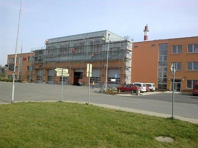 | Popis | Novostavba slouží jako služebna Městské policie. Jedná se o železobetonový třípodlažní skelet založený na železobetonovém roštu v modulu 3 x 6m v podélném směru a 6m + 3m + 6m v příčném směru. Obvodový plášť tvoří výplňové zdivo Ytong s kontaktním zateplovacím systémem, plastovými a hliníkovými výplněmi, střecha plochá. Nástavba je umístěna nad stávající garáží hasičské záchranné stanice. Nástavba je řešena jako ocelová konstrukce 36m x 18m s výplní zdiva Ytong, kontaktním zateplovacím systémem a plochou střechou a nachází se v ní prostory hygienického zázemí, mužské a ženské a tělocvična s hledištěm. Součástí výstavby je venkovní sportovní plocha 20m x 40m, zpevněné plochy, sadové úpravy a oplocení, kanalizační, vodovodní přípojka, venkovní osvětlení. |