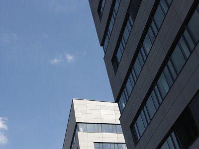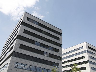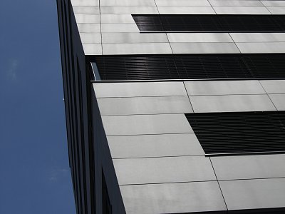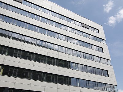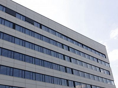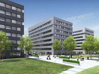 Prostranství mezi budovami vyplní tzv. piazetty, pobytové prostory se vstupy do jednotlivých objektů. V okolí Prosek Point Office Center budou zahrady, které budou přirozeným pokračováním okolní zeleně. Pocit vzdušnosti podpoří také fasády s nepravidelně dělenými pásovými okny. Pevný prostor mezi nimi vyplní obklady na bázi sklocementových desek. |