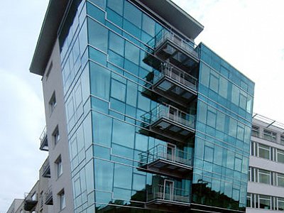 | Popis | Technicky a konstrukčně je stavba provedena technologií monolitického betonu. Objekt je založen na železobetonové základové desce. Nosnou konstrukci tvoří železobetonový monolitický skelet o sedmi nadzemních a dvou podzemních podlažích. Stropní desky jsou žebrové, vytvořené plastovými krabicemi vkládanými do bednění. Obvodový plášť je z části tvořen skleněnou stěnou, z části je vyzdívaný nebo monolitický s tepelnou izolací. Prosklená fasáda haly má nosnou část speciálně navrženou pro tento účel, jde o svařovanou nerezovou příhradovou konstrukci, která nese strukturálně zasklenou fasádu. Povrchy fasád tvoří v některých částech sklo, přírodní kámen (granit) nebo tvrdá omítka s nástřikem silikátovou barvou. |