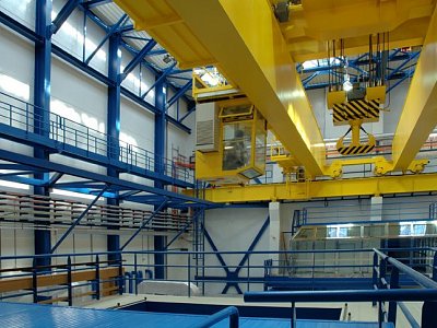 | Popis | Jedná se o jednopodlažní, jednolodní halu s kombinovaným konstrukčním systémem, který se skládá z vetknutých železobetonových sloupů a ocelové střešní konstrukce. Tuhost v příčném i podélném směru je zajištěna vetknutím železobetonových sloupů do dvoustupňových železobetonových patek a vzájemným ztužením v úrovni jeřábové dráhy, střešní konstrukce a sloupů. Na sloupech je osazena jeřábová dráha pro manipulační jeřáb 130/10t, střešní ocelové příhradové vazníky, konstrukce střechy s větracími světlíky–jedním podélným v prostoru haly a pěti příčnými v prostoru příjmové části. Objekt slouží pro příjem, přípravu pro skladování a vlastní skladování kontejnerů. Příjmová a manipulační část je prostřednictvím manipulačního a dopravního koridoru propojena vlečkovou kolejí. Železobetonový skelet objektu je ze sloupů, částečně založených na pilotách. V příjmové části jsou provedeny vestavby z železobetonových i klasických materiálů, jež jsou dále využity k provozním, skladovým, kontrolním, sociálním účelům. Dále jsou zde budovány prostory pro případné návštěvy – exkurse. Vlastní skladová část je od příjmové části oddělena stínící stěnou s manipulačním otvorem pro přesun kontejnerů. Sklad vyhořelého paliva je opláštěn železobetonovými panely, větrání haly zajišťuje přirozená aerace pomocí větracích žaluzií u podlahy a ve střeše. |