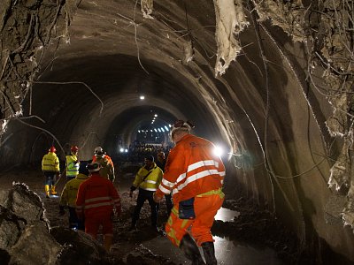 Tunel dlhý takmer 2,2 km je razený súčasne minimálne šiestimi čelbami v nepretržitej prevádzke 7 dní v týždni 24 hodín denne. Celkovo to znamená zapojenie celkovo 200 robotníkov – razičov, strelmajstrov, banských elektrikárov a mechanikov. Podobný rozsah raziacich kapacít nie je nasadený na žiadnom inom tunelovom projekte na Slovensku ani v Čechách.