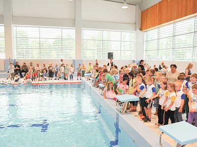 Bazének s proudovým kanálem a hydraulickým zvedákem pro handicapované