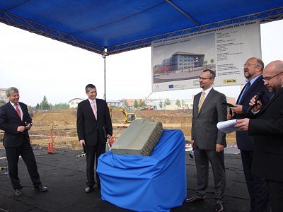 Poklepání základního kamene nové budovy fakulty Elektrotechnické a Informatiky VŠB-TUO