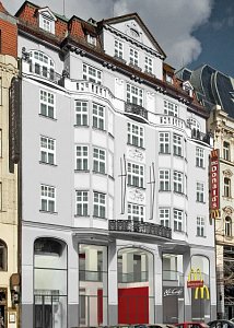 Opentlený stromeček, který doprovází glajchu a představuje tradiční symbol štěstí a ochrany domu a jeho obyvatel, tak zdobí budovu postavenou v letech 1913 až 1914 podle návrhu architekta Matěje Blechy. Provádění rekonstrukce historické budovy v rušném centru Prahy je skvělou příležitostí ke zviditelnění společnosti a práce, kterou její zaměstnanci provádějí, ale má i svá úskalí. Budova si sice v souladu s požadavky památkářů ponechala své průčelí a části nosných konstrukcí stropů, stěn a sloupů, ale v ostatních částech proběhla téměř kompletní demolice. Následovalo založení nového objektu, provedení monolitických a prefabrikovaných konstrukcí a repase a obnova střešní konstrukce. Nyní se pokračuje s restaurováním čelní fasády, repase oken, dveří a schodišťových stupňů.